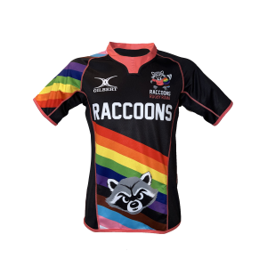 Maglia gara sublimata 100% poliestere, personalizzata Raccoons Rugby Roma.